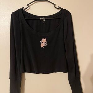 Intimately Free People Black Long Sleeve Top with Pink Floral Design M