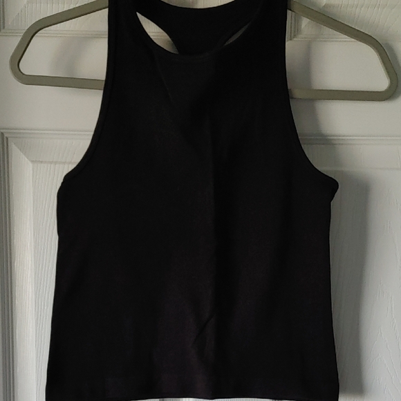 Chic black ribbed razorback tank top by Free People. Ideal for layering or wearing alone. Like New Condition.