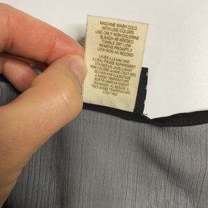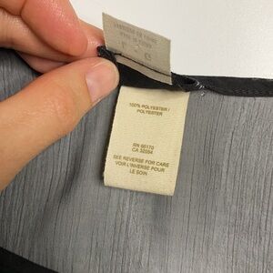 Snap on bottom anterior side and loose seam on right shoulder hem (easy fix). See photos for details.