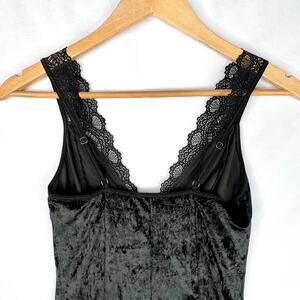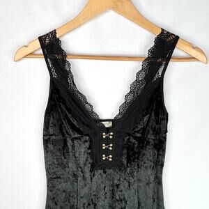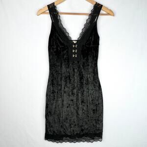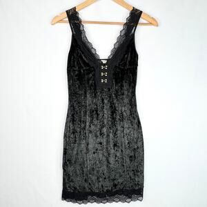 Intimately Free People Wait For It black velvet mini dress with v0neck, lace trim detail, and bronze metal clasps at bust. Size extra small. In great condition!
