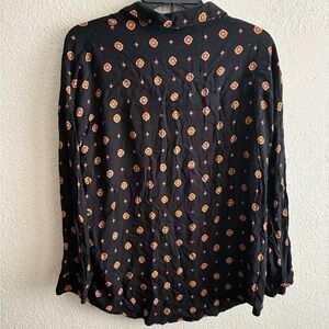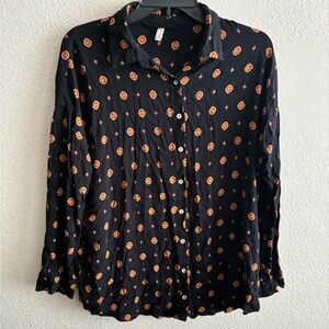 Intimately Free People Black and Orange Button Down Long Sleeve Shirt XS