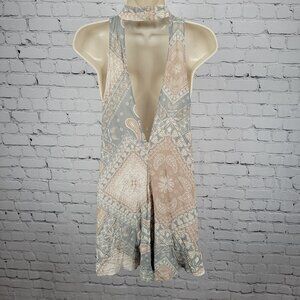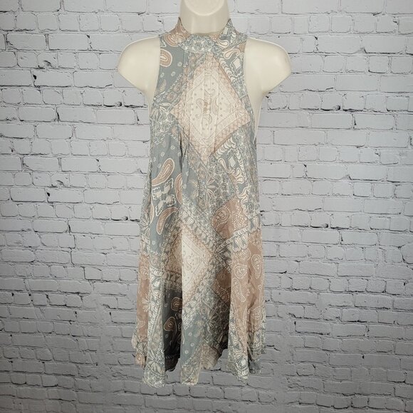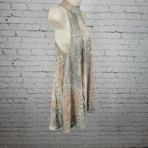 Intimately Free People Blue Tan Paisley Lightweight High Neck Mini Dress XS