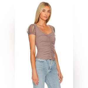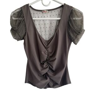 Add a touch of romantic charm to your wardrobe with the Blush Up Cami from Intimately Free People. In the moody Falcon shade—a sophisticated taupe-gray—this cami features a softly ruched scoop front, semi-sheer Swiss-dot puffed sleeves, and a delicate mesh back panel. The stretchy, lined bodice ensures a comfortable yet figure-skimming fit, making it perfect for pairing under jackets, with high-waisted jeans, or even as a sultry lounge piece.