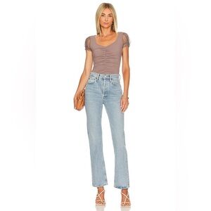 Scoop neckline with soft ruched detail at front