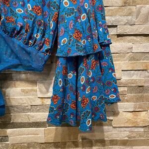 Intimately Free People Bodysuit M Azure | She’s Dainty Floral Bell Sleeve V-Neck