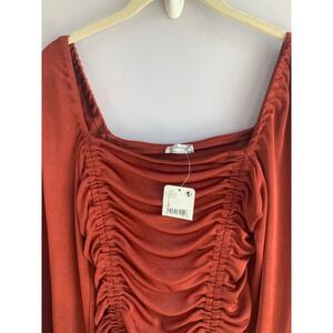 Intimately Free People Bodysuit Top Cherry Chai Long Sleeve Ruched NWT