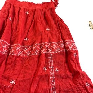 Intimately Free People Boho Dress Embroidered off shoulder smocked Red short M