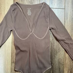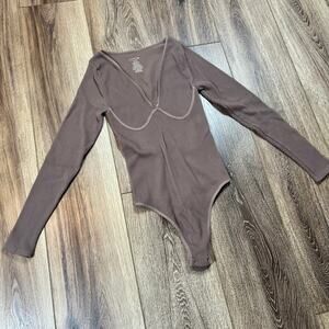 Intimately Free People Brown Seamless Meg Long Sleeve Bodysuit