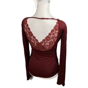 Intimately Free People Burgundy Lace Back Long Sleeve Top Size XS