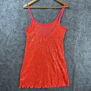 Intimately Free People Cami Dress Womens Large Neon Coral Sequin Mesh Fairy