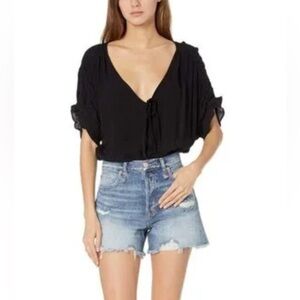 Intimately Free People Cleo Black Thong Bodysuit
