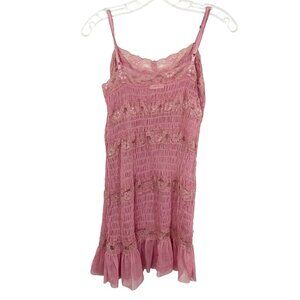 Intimately Free People Condesa Mini Slip Dress Smocked Pink Sheer Lace MEDIUM