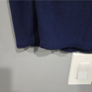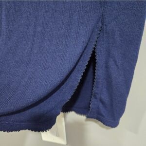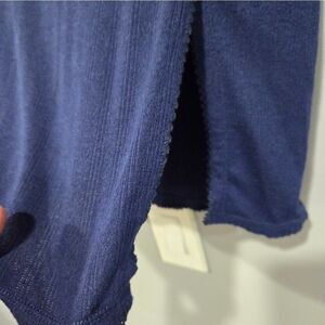 One little slit on the side adds a little style to this cute navy skirt. There is a little ruffle on the end as well.