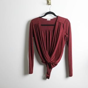 Intimately Free People Dark Red Long Sleeve Wrap Front Bodysuit