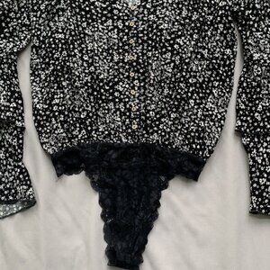Intimately Free People Ditsy Flare Bell Sleeve Floral Bodysuit Small