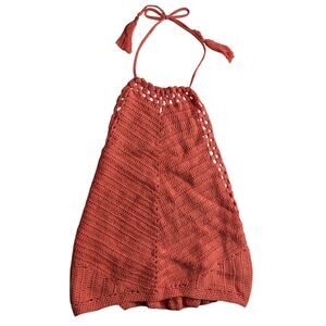 Soak up all the sun in this crocheted cotton top with a high halter neckline, open back and crop hem for cool '90s style. Ties behind neck. Crop hem. 100% cotton.