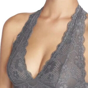 Intimately Free People Galloon Lace Halter Bralette in Graphite Women’s Size M