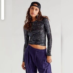 This stunning long sleeve features an allover embellished design for the perfect, occasion-ready must-have.