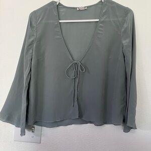 Intimately Free People Gray Tie Front Wider Sleeve 100%Silk top