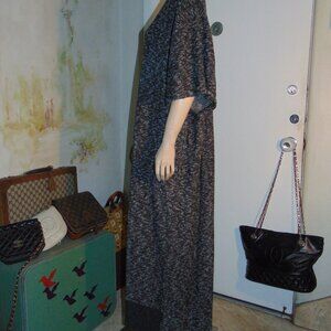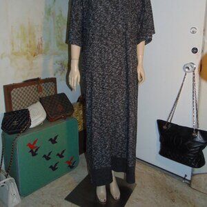 Elevate your wardrobe with this stunning Intimately Free People Heather Gray Black Fleece Hazy Maxi Dress Pajama Lounger. The dress features a scoop neckline, short bell sleeves, and a pullover closure. The contrasting fabric bottom trim adds a touch of mixed media to the dress, making it perfect for any occasion, whether it's a casual day out or a night on the town. The dress is made of a comfortable polyester blend knit fabric that stretches to fit you perfectly. It's machine washable and perfect for any season, whether it's winter, fall, or spring. This dress is perfect for anyone who loves the bohemian style or the lagen look. The dress is available in size L and is suitable for women of all ages. You can wear it as a shift, maxi, sweater dress, or shirt dress, and it will look great on you every time. The dress is perfect for travel, workwear, business, or as its made purpose, a nightgown or lounger. Add a touch of designer, knitwear, beach, or lounger style to your wardrobe. Womens Large, Slit in back!