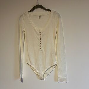 Intimately Free People Henley Bodysuit XS Cream Waffle Thermal Knit Softgirl