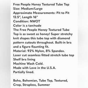 Brand: Intimately Free People, Style: Honey Textured Tube Top, Color: Nude/Tan,