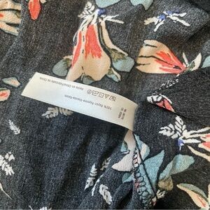 This dress from Free People is in great pre-owned condition. It is in an allover black color with a multi-color floral print. It features; elastic squared neckline, ruffled trim, sleeveless with adjustable tie thin straps, elastic waist, open back, slip silhouette, mini length and is crafted from 100% rayon.