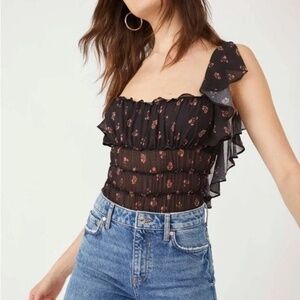 Intimately Free People Juliet Printed Bodysuit Black 20835