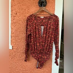 Intimately Free People Kaya Floral Print V-Neck Cutout Bodysuit Size Small Boho