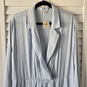 Intimately Free People Light Blue Long Sleeve Collared Loungewear Romper Size M