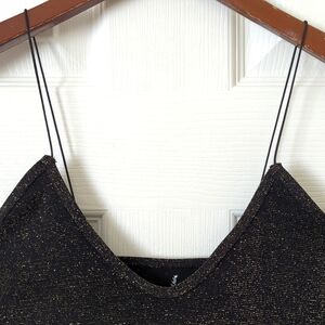 Intimately Free People Lurex Knit Skinny Strap Seamless Brami Top Black Gold XS