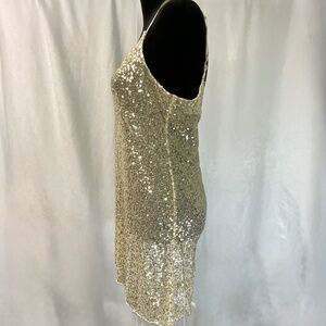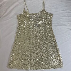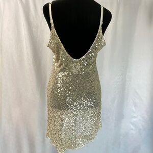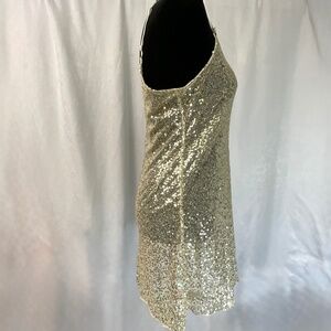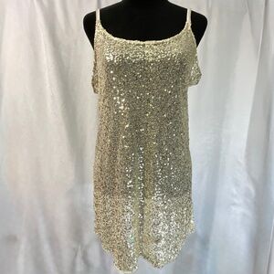 Intimately Free People M Sequin Slip Festival Dress Gold Sparkle Mini Party