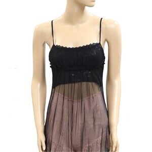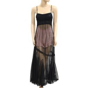 Intimately Free People Madeline Mesh Maxi Slip Dress Lace Sheer Black XS 281379