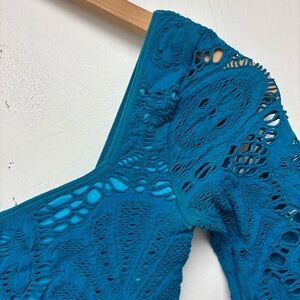 Awesome Intimately Free People Medallion Bodycon Dress. Lace over contrasting underlay. Square neckline.