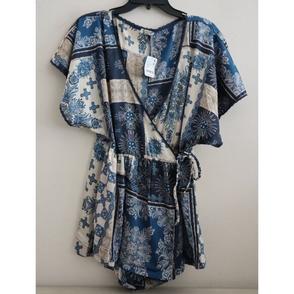 Intimately Free People OB1963838 Women Sz S Indigo/Blue Combo Oasis Wrap Romper