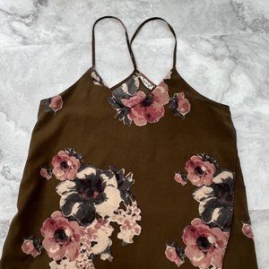 Intimately Free People Olive Green Floral Cascade Racerback Slip Dress Xsmall XS