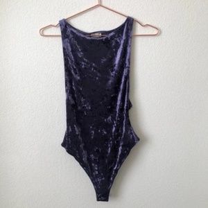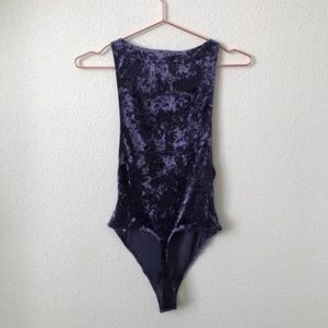 Intimately Free People purple crushed velvet sleeveless thong bodysuit high neck
