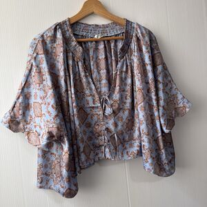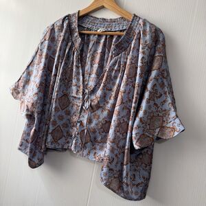Intimately Free People Pajama Top Medium Misty Mornings Blue Combo Satin