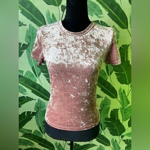 Intimately Free People Pink Crushed Velvet Baby Tee Top Size M