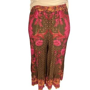 Intimately Free People Pink and Brown Paisley Print Metallic Wide Leg Boho Pants in size XS