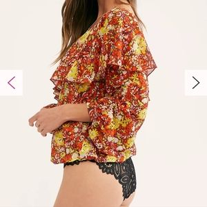 Intimately Free People Say It To Me Floral Long Sleeve Boho Bodysuit Ruffled S