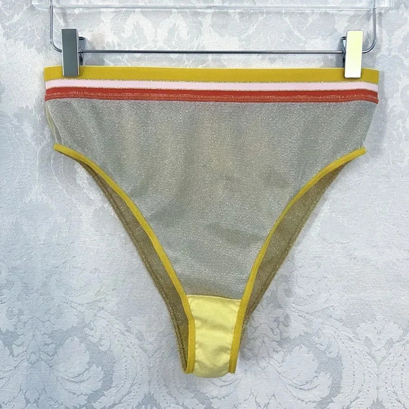 Intimately Free People Shimmer Sheer Panty With Striped Elastic Waist Size M EUC