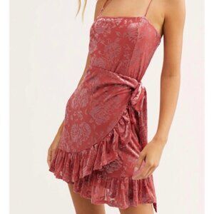 Intimately Free People Size S Pink Blush Velvet Floral Ruffled Mini Dress