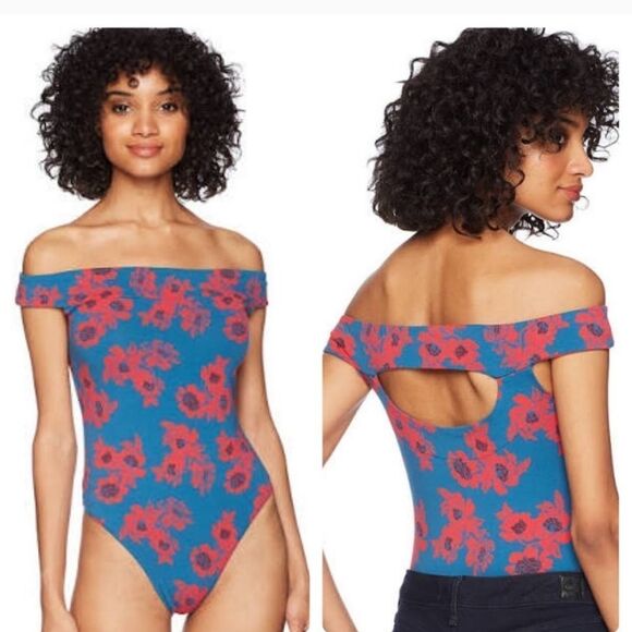 Intimately Free People So Much Bodysuit Off Shoulder Blue Combo XS NWT