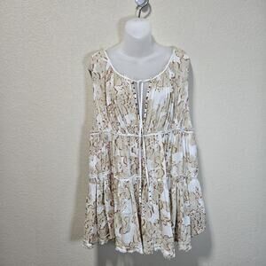 Intimately Free People Sundown Romper Boho Studded Jumper Tiered Beige Sheer XS