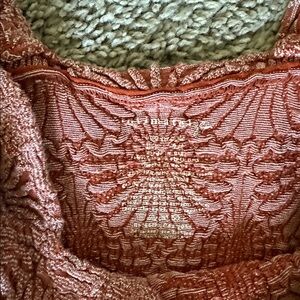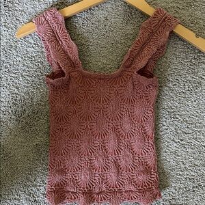 Stylish sleeveless top with a textured design in a rust color. Perfect for casual outings.