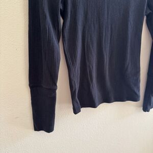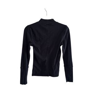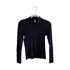 Essential ribbed long sleeve top featuring a mock neck and formfitting look.