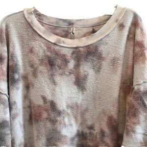 Intimately by Free People lightweight inside out crew neck sweatshirt. Brown & cream tie dye with double layer collar and hem. Excellent condition with no rips stains or tears. Gently worn. Size medium, I think could fit up to an XL.