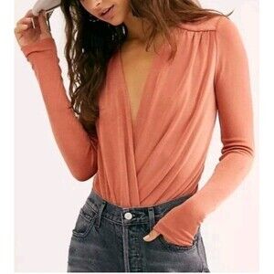 Intimately Free People Turnt Bodysuit Women's XS Orange Plunge Deep V Surplice