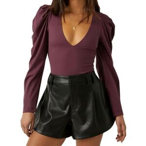 Intimately Free People Va Va Voop Bodysuit Long Sleeve Women XS Precious Wine
